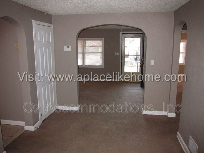 This charming single-level home offers warmth and comfort throughout. Neutral paint tones create an inviting atmosphere, while playful archways add character and charm. The galley-style kitchen provides ample space for cooking (tenant to provide refrigerator).