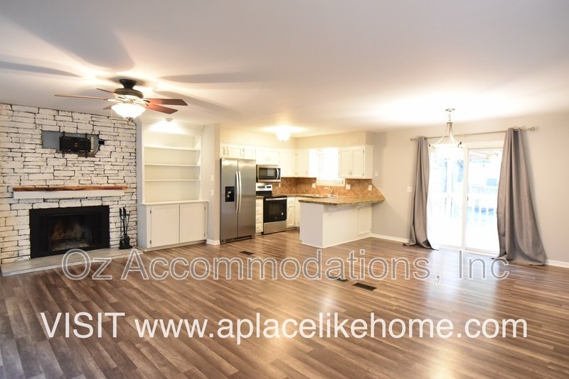 The main living area features stylish, wood-look luxury vinyl flooring and a stunning stone fireplace, creating a cozy yet elegant environment. The kitchen and dining area are seamlessly integrated, perfect for modern family life. All appliances stay with the home and the home offers a very spacious pantry off.
