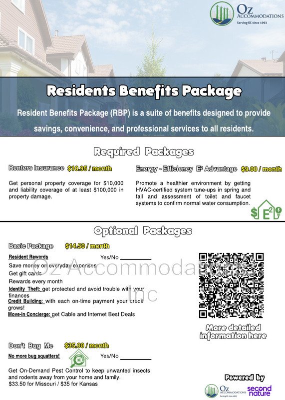Basic Package: $14.50/month â Includes resident rewards, identity theft protection, credit building, and move-in concierge services.